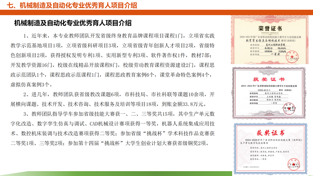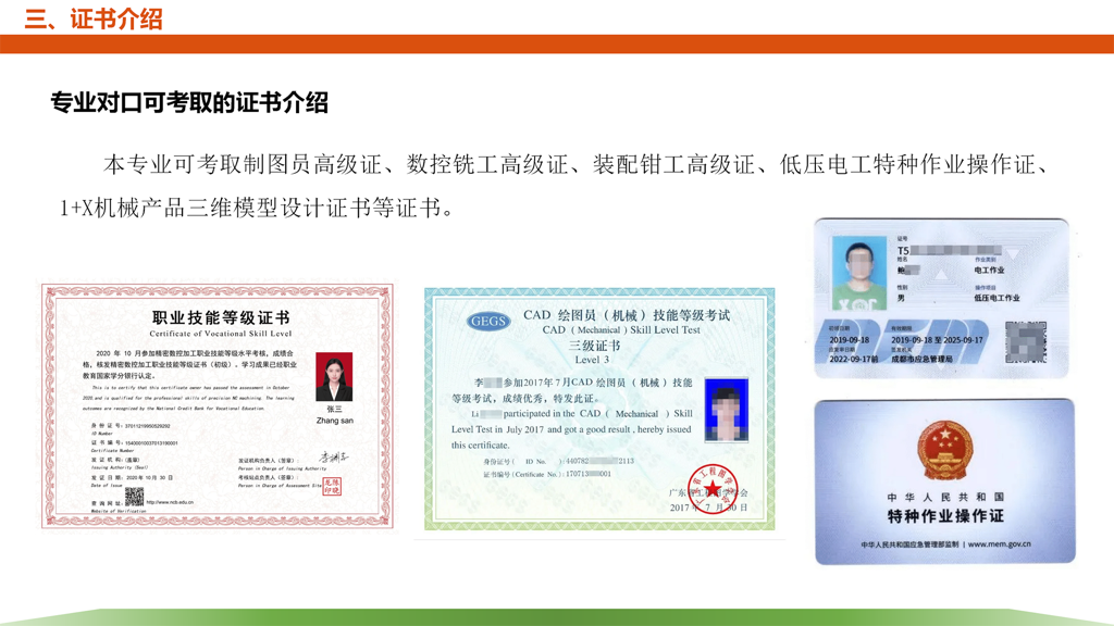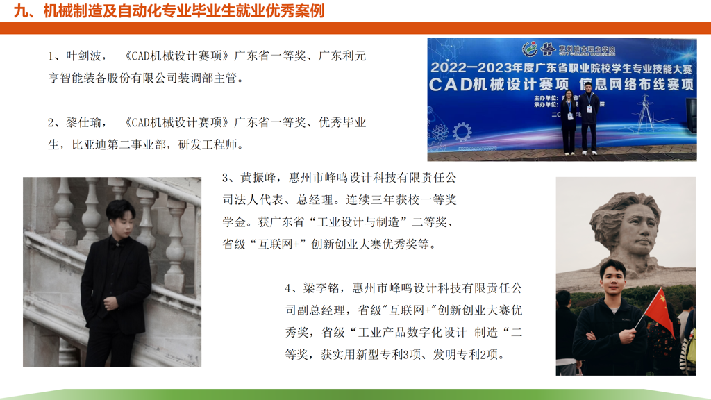 主要面向机电产品制造、汽车制造、自动化设备制造、数控机床制造等企业和事业单位的技术研发部、工艺工程部、生产部、质监部、销售部、售后服务部等部门,可从事机械产品设计开发、机电设备管理维护、机械加工工艺设计、工夹具设计、自动化工装设计、机械产品质量检测、数控机床操作、数控工艺编程、模具设计与制造、生产工艺管理、工业机器人工作站安装维护、机电产品技术销售等工作。